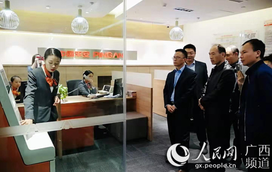 評審專家組一行參觀核查平安產險廣西分公司門店(王麗霞/攝)