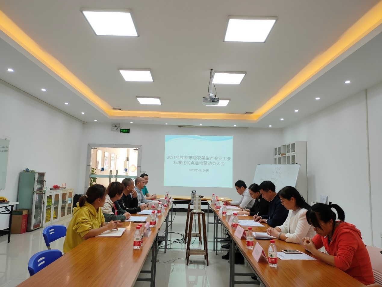 4月29日,為全面部署桂林市衣架生產(chǎn)企業(yè)標(biāo)準(zhǔn)化良好行為試點(diǎn)創(chuàng)建工作,廣西桂林華海家居用品有限公司組織召開(kāi)2021年桂林市衣架生產(chǎn)企業(yè)標(biāo)準(zhǔn)化良好行為試點(diǎn)啟動(dòng)暨動(dòng)員大會(huì)。桂林市市場(chǎng)監(jiān)管局標(biāo)準(zhǔn)化科唐慧副科長(zhǎng)、蔣曉龍主任科員、荔浦市市場(chǎng)監(jiān)管局質(zhì)量綜合監(jiān)督管理股股長(zhǎng)陳明霞、我司總經(jīng)理黃林華、廣西桂林華海家居用品有限公司董事長(zhǎng)助理莫祖存、總經(jīng)理助理韋曉康以及各部門(mén)主管參加會(huì)議。